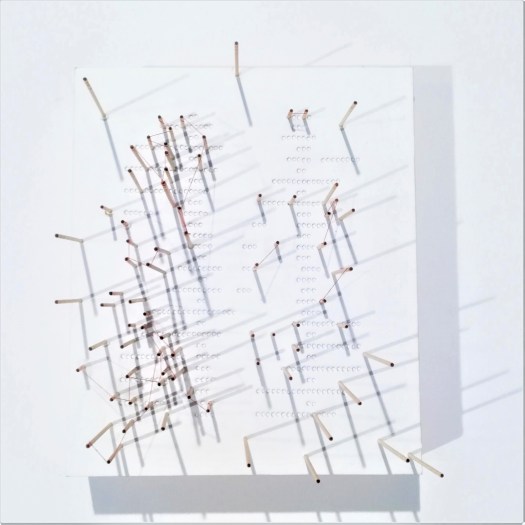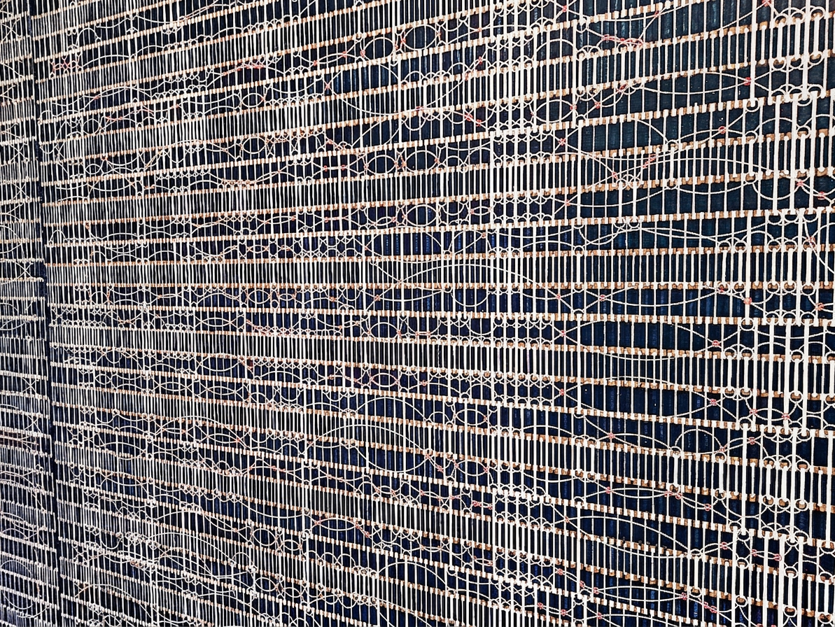 The tool becomes a key element—not only as a medium, but as a device that enables a passage of connectivity and perceptual transformation. The works configure complex grids of relations that reflect displacement—visual, mental, spatial—and, through their reiteration, approach metaphysical principles related to being and existing in relation to the environment.