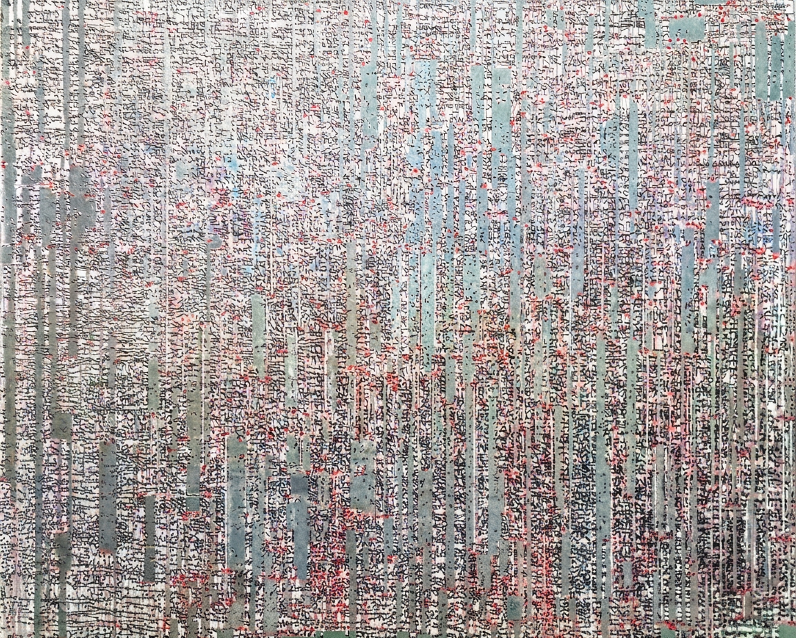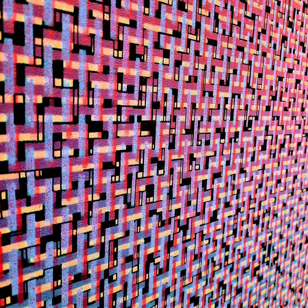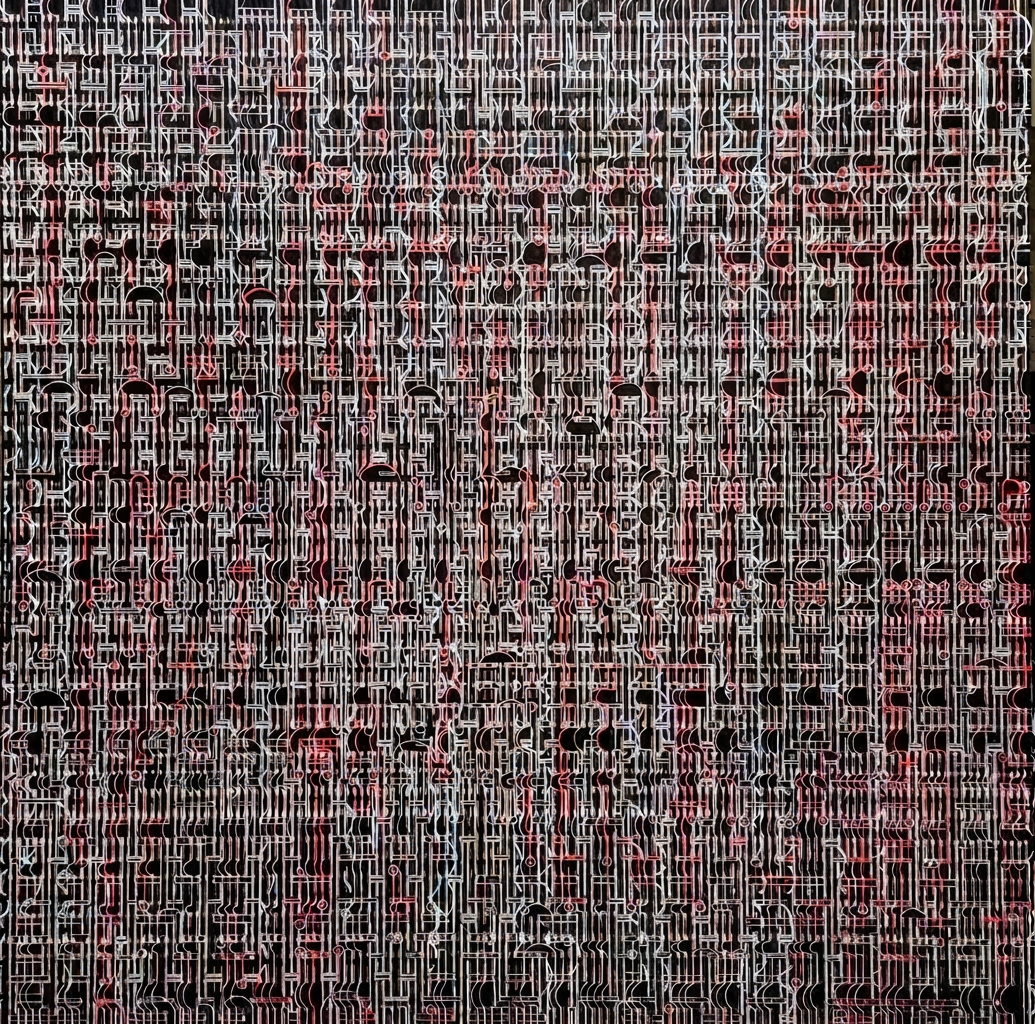 GRAPHIC TRANSMISSION CODES: Acrylic and pigment bound on wood. 100 × 200 cm. 2020.