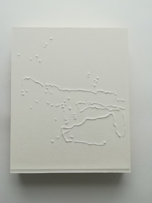 Estas interpretaciones fueron posteriormente recogidas y transformadas en gofrados, devolviendo a los participantes una traducción material de su propia percepción. Se establece así un circuito de ida y vuelta: de la imagen al tacto, del tacto a la gráfica, y de nuevo a la percepción.