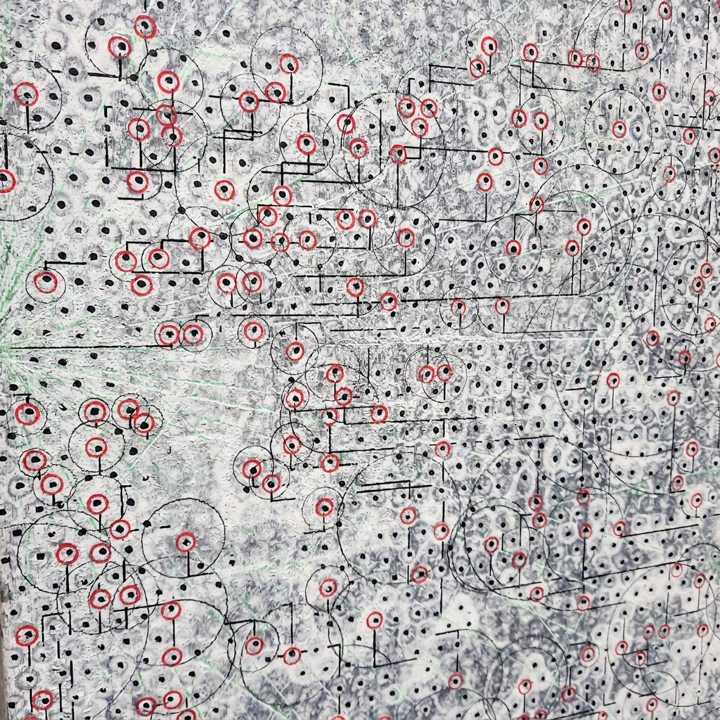 UNTITLED: Mixed media on wood 50 x 50 cm, 2018. Detail