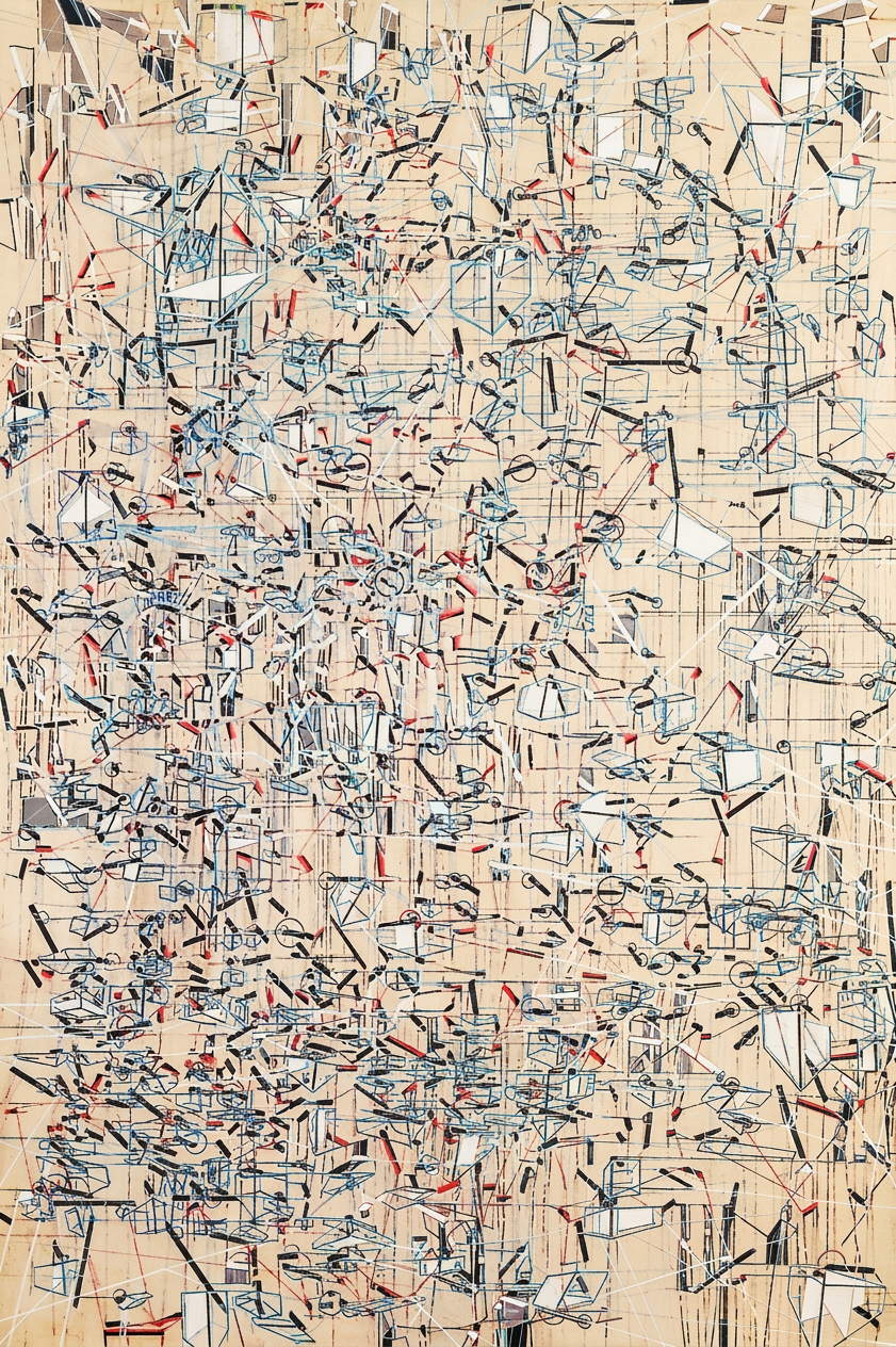 ARCHITECTURES OF LIGHT DRAWN BY THE WIND OVER A SMALL FRACTION OF THE EVER-UNKNOWN MEDITERRANEAN: Acrylic, nubaline and oil on canvas. 175 × 195 cm, 2024