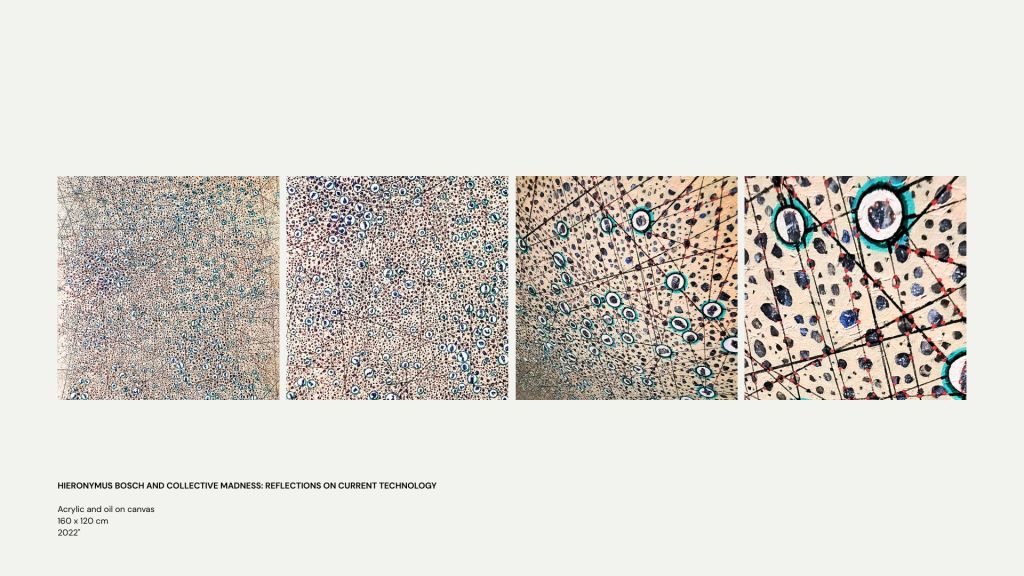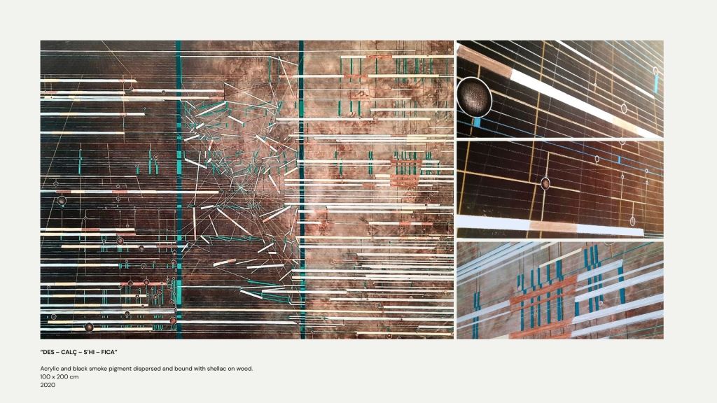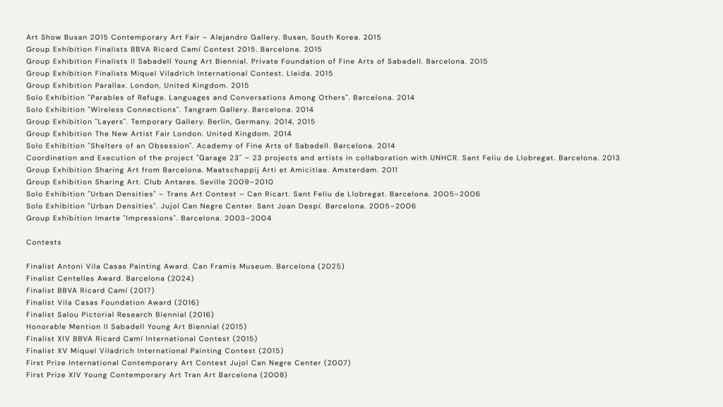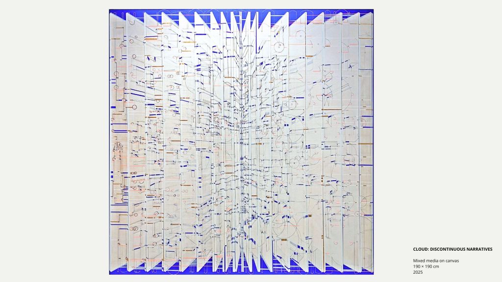 Esta condición híbrida sitúa su trabajo en diálogo con la abstracción contemporánea, el minimalismo expandido y la pintura sistémica, así como con prácticas que abordan la tecnología, el pensamiento urbano y una ecología de sistemas. La pintura se convierte así en un espacio de reflexión sobre las estructuras que sostienen el presente y sobre la dimensión sensible que continúa atravesándolas.